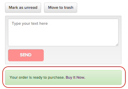 You will see a green bar in your conversation that says "Your order is ready to purchase. Buy it Now.